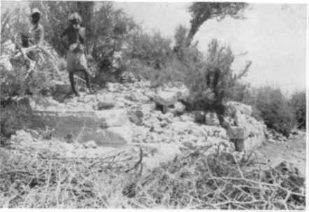 . في اليوم التالي غادرْنا المكان الذي يُسمَّى بالعقبة البيضاء، بعد تناول وجبة غداءٍ شهيَّة، والاستحمام في جدولٍ تحتَ ظلال النخيل في غيل. جلسْنا أيضًا هناك تحت الأشجار نُنَاقِشُ بعض الأمور والأنشطة الاجتماعية مع شيخ قبيلة نعمان، وهي القبيلة التي تسكنُ هذا الجزء من البلاد، وهو الرَّجُلُ الذي قام بمرافقتنا من قريته القونا(40)، ثم قام ذلك الشيخ بفك (الفص) – وهو عقيقٌ أحمرُ، مُرَصَّعٌ بالفِضَّةِ، يَرتَدِيهِ غالبُ رجال القبائل، ويقال إن له خصائص طبِّيَّة – من عُنُقِهِ ورَبْطِهِ في عنقي، قائلًا لي: بما أنني قد عِشتُ عِيشتَهُمْ عِيشةَ البدو فكان لزامًا عليَّ أنْ أرتدي ما يَرْتَـدُونَهُ، وبعد هذا قام بتوديعي (انظر الصور 3، و4، و7).