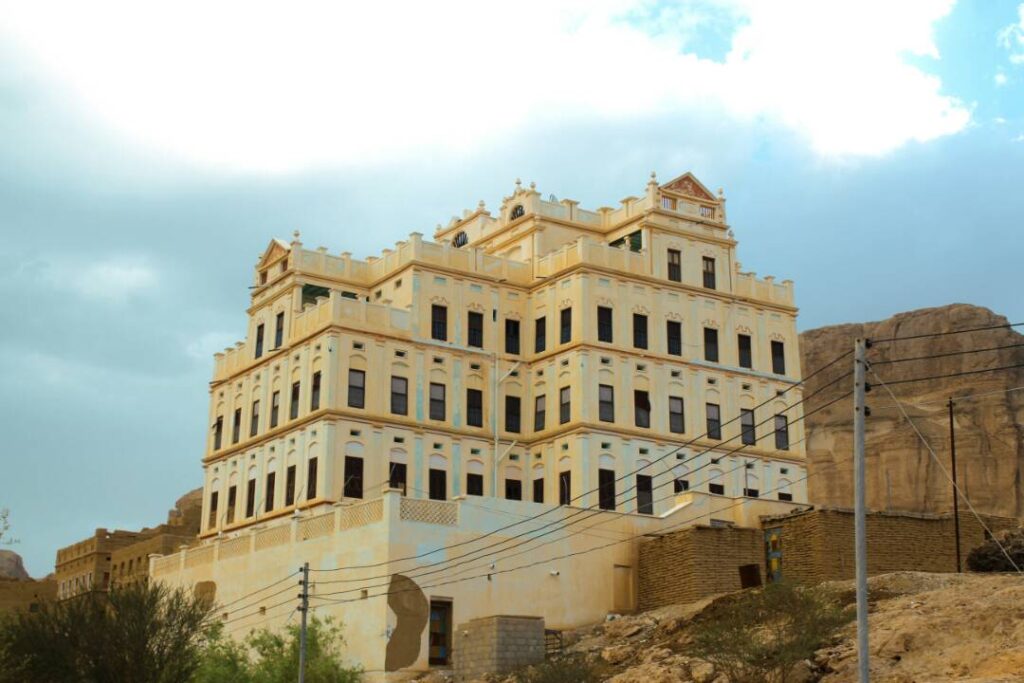 دار القرن: وهي عبارة عن قصر شامخ يستقبل القادمين من جهة الشمال، يتربَّع على جبل صغير، يُسَمَّى قرن غشان، وإليه نسب هذا القصر وسُمِّي باسمه، ويعد أكبر مبنى سكني بالمنطقة، ويعود لأسرة آل العمودي أبناء محمد علي العمودي، وتم بناؤه بين 1965-1971م، وهو من تصميم المعلم صالح سالم بامهير وتنفيذه، والذي قام ببناء الطابقين الأول والثاني، ثم قام باستكمال البناء المعلم الدموني، في حين قام بأعمال الخشب من أبواب ونوافذ وأعمدة المعلم محفوظ باجحاو باطرفي وساعده المعلم عوض رجب بامدحج، وكثيرًا ما يقف عنده السُيَّاح الأجانب لالتقاط الصور له، ويشتمل هذا القصر على 24 غرفة، وهو مبنيٌّ من الطين والنُّورة، ومؤخَّرًا تم إعادة ترميمه وطلائه بالألوان الزاهية.