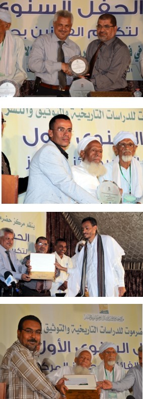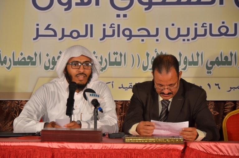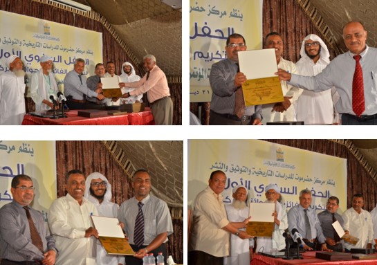 وفي حفل خطابي وتكريمي مميز وتزامنا مع الذكرى الأولى لتأسيس هذا الصرح البحثي العلمي التاريخي الحضاري الحضرمي وفي الحفل الذي احتضنته قاعة المهندس أكرم بن مبيرك بنادي متطوعون التي احتضنت أعمال المؤتمر على مدى يومين بحضور رئيس جامعة حضرموت الأستاذ الدكتور محمد سعيد خنبش ونائب رئيس الجامعة للشؤون الأكاديمية الأستاذ الدكتور عبدالله صالح بابعير والدكتور وجدي عبدالرحمن باوزير مدير عام مكتب وزارة الثقافة وعدد من الأساتذة والمشاركين في أعمال المؤتمر والمهتمين بالشأن الثقافي والتاريخي والحضاري الحضرمي .