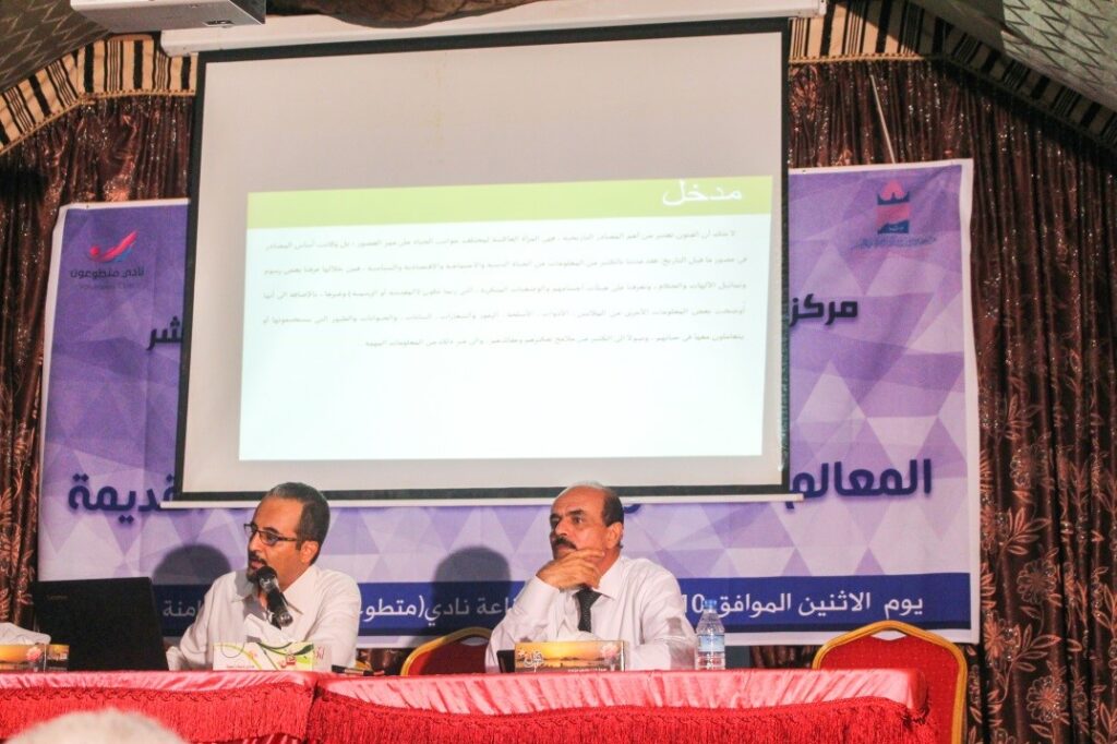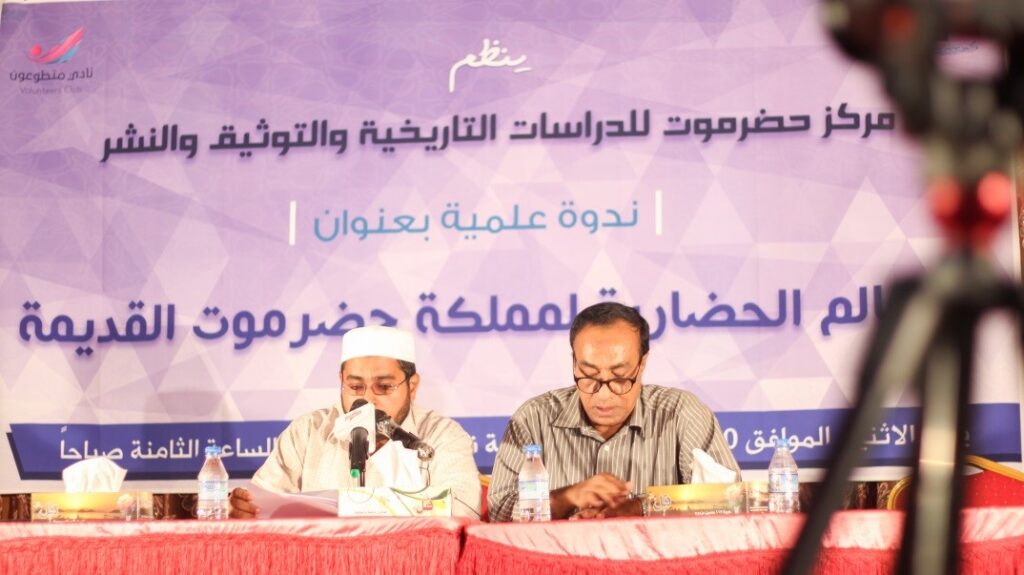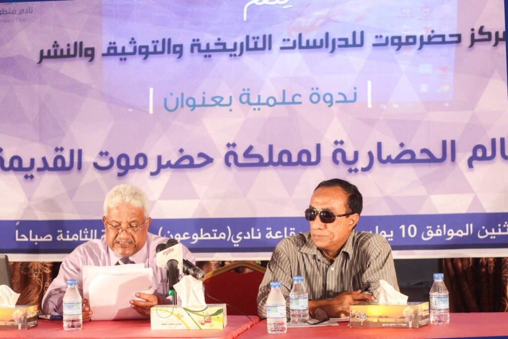 نظم مركز حضرموت للدراسات التاريخية والتوثيق والنشر يوم الاثنين 10 يوليو 2017 ندوة علمية بعنوان ” المعالم الحضارية في مملكة حضرموت القديمة حتى فجر الإسلام” بقاعة نادي متطوعون بالمكلا- أسهم فيها عددٌ من الباحثين والأساتذة المختصين من جامعتي عدن وحضرموت والمراكز البحثية المهتمة بالتراث والهيئة العامة للآثار والمتاحف.