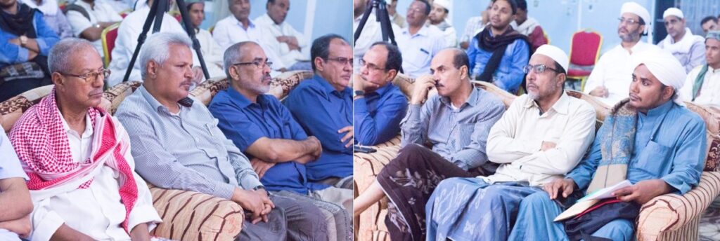 هذا وقد حضر المحاضرة أ.د. عبدالله سعيد الجعيدي رئيس مركز حضرموت للدراسات التاريخية والتوثيق و د. صادق عمر مكنون نائب رئيس جامعة الأحقاف وعدد من مديري الإدارات بالمركز وإدارة معهد رباط النور للدراسات الإسلامية وجمع من أساتذة الجامعة والطلاب والمهتمين.