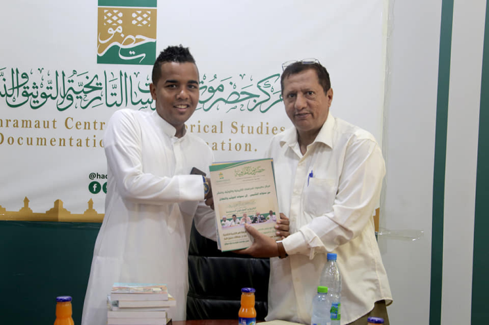 وفي ختام الزيارة أهدى مدير المركز للزائر عددًا من الكتب الصادرة عن المركز وبدوره أهدى د. باعيسى أعدادًا من مجلة حضرموت الثقافية..