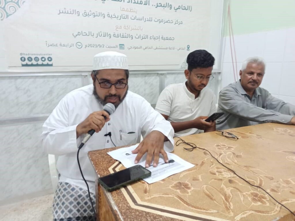 نفذ مركز حضرموت للدراسات التاريخية والتوثيق والنشر فعالية ثقافية بمدينة الحامي بعنوان (الحامي والبحر.. الامتداد الثقافي والبعد التراثي) بالشراكة مع جمعية إحياء التراث والثقافة والآثار بالحامي وبحضور مدير عام مديرية الشحر أ. عادل باعكابة، وفي مستهل الفعالية رحّب رئيس الجمعية أ. محمد علوي باهارون بالحضور الذي قدم من مدينة الشحر والديس الشرقية، وأكد على أهمية إبراز المواقع التاريخية لما تمثله من بعد ثقافي وتراثي يجب المحافظة عليه وتوثيقة عن طريق الأبحاث والمقالات والندوات والاستفادة من الشخصيات التي عاصرت الفترة الزمنية الماضية.