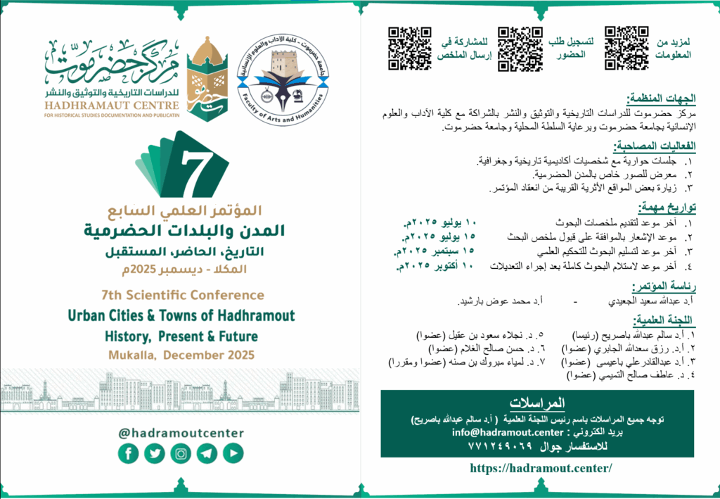 دعوة للمشاركة .. المؤتمر العلمي السابع .. (المدن والبلدات الحضرمية (التاريخ، الحاضر، المستقبل)